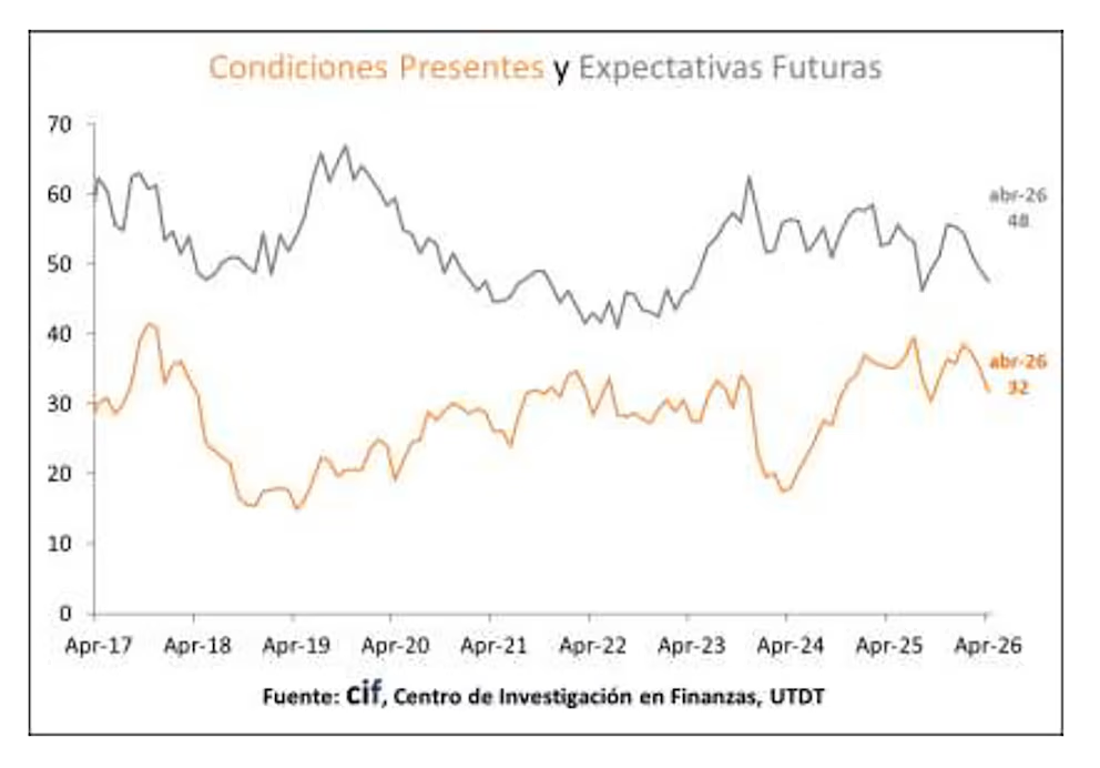 El relevamiento, realizado por Poliarquía Consultores en 40 grandes centros urbanos de todo el país entre el 6 y 17 de abril, determinó que el indicador descendiera a 39,64 puntos. Este nivel es el menor desde julio de 2024, cuando había bajado a 39,1 unidades.